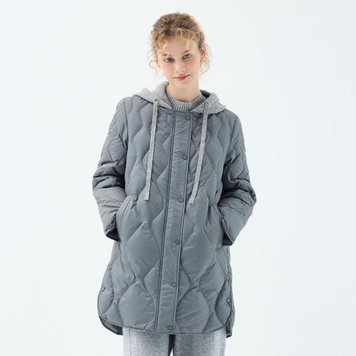 [유닛]롱 길이 니트 후드 나시서스 다운 재킷 (UFKWJA46IT-GREY)