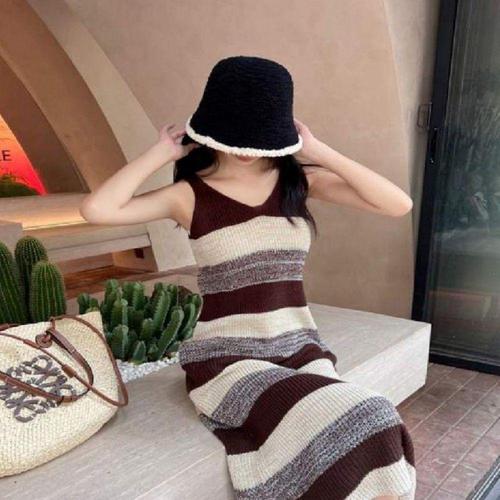 [오너클랜]인기상품 여성용 나시 니트 롱 스커트 원피스 스트라이프 패턴 [WFLIG54_260301]