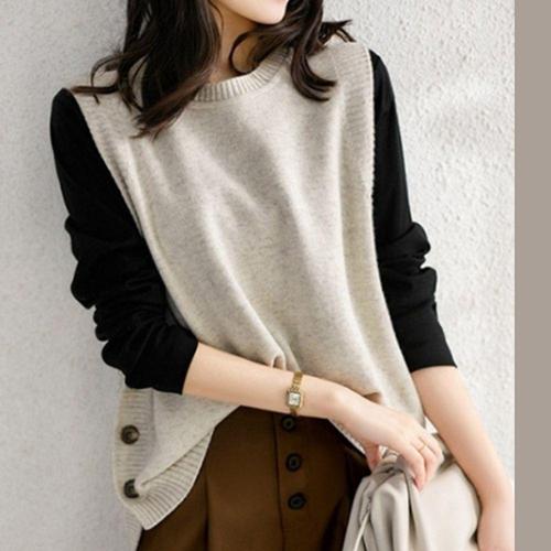 [셀럽하우스]옆버튼 UFCN8142 루즈핏 캐주얼 여성 니트 필수템 조끼 여자 롱