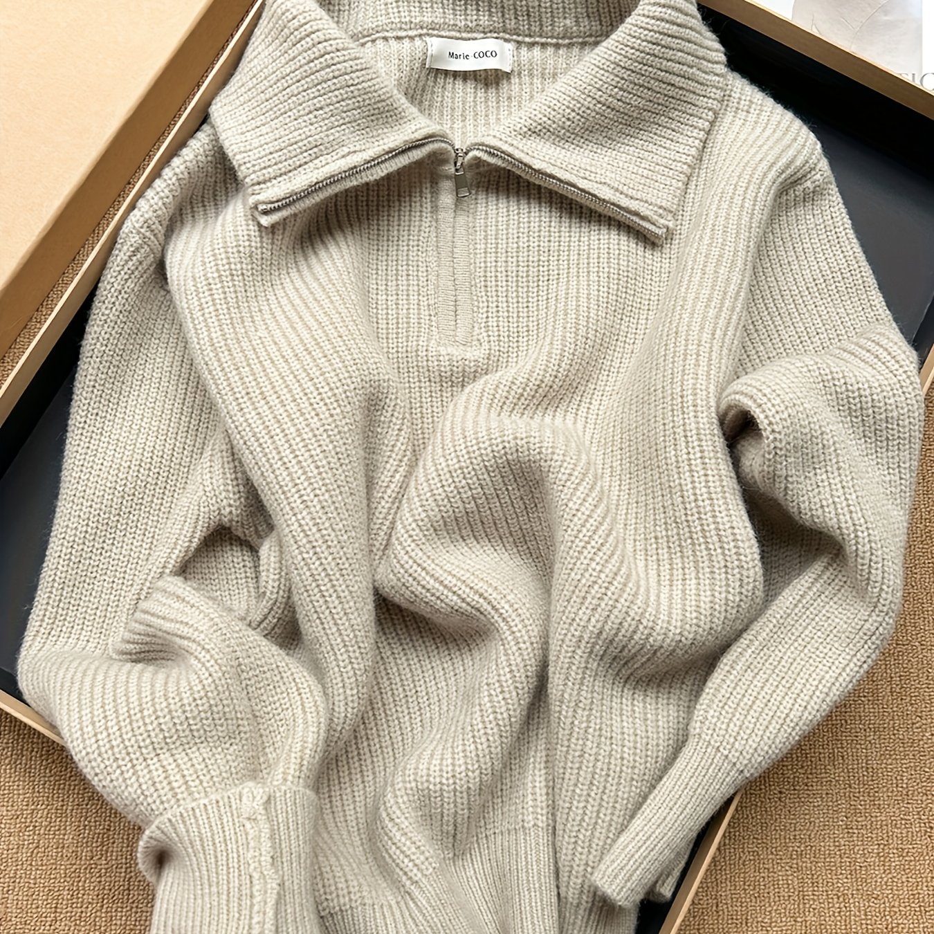 TEMU 마리·코코 여성용 칼라 롱 슬리브 스웨터 - 소프트 리브드 캐주얼 시크 풀오버, 지퍼 프론트, 세탁기 사용 가능 사계절 솔리드 컬러 탑, 릴랙스 스타일, 클래식 니트웨어, 내구성 있는 디자인, 편안함을 추구하는 분들을 위한