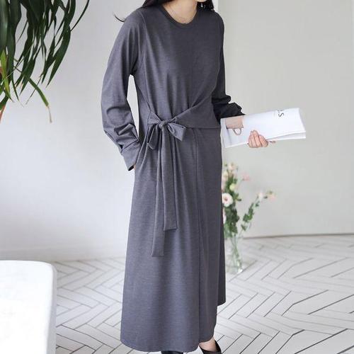 프롬코 여성 긴팔 랩스타일 옆셔링 롱 원피스 FRC122