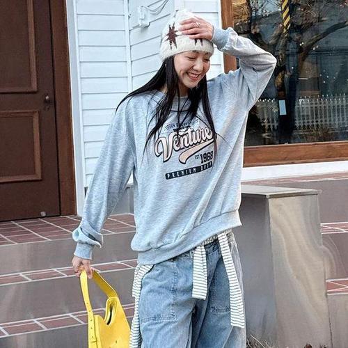[셀러허브_여성트랜드패션]여자 박시핏 롱슬리브 봄티셔츠 프린팅 맨투맨