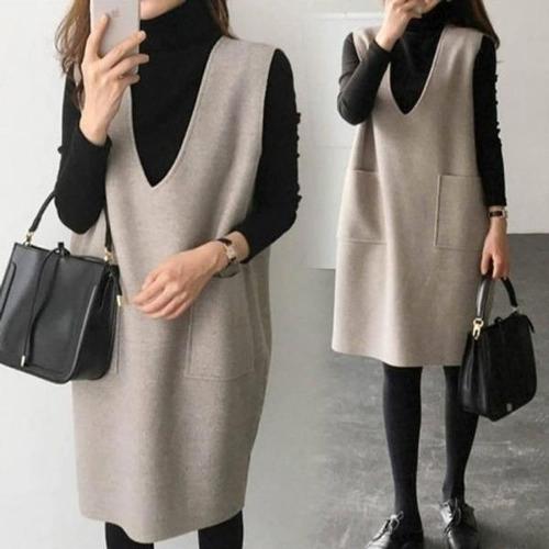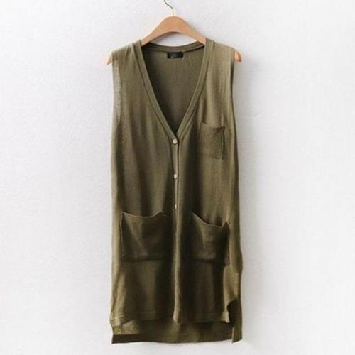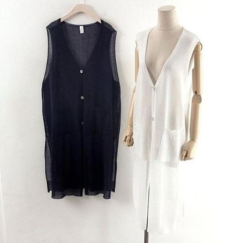 [엄지척]여성 V넥 옆트임 롱 니트 조끼 오버핏 옆트임 베스트_19680900_667501
