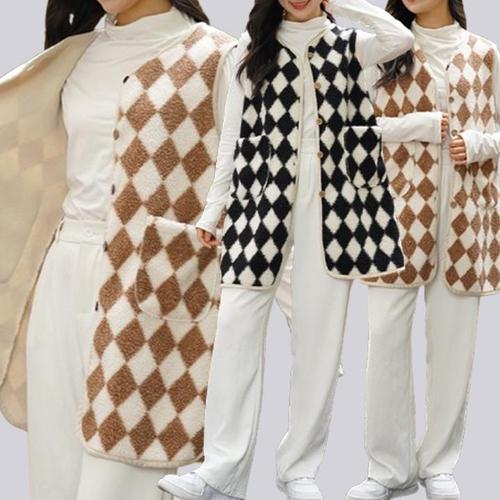 [로즈엘리][2컬러] 겨울 여성 아가일 양털 롱조끼 베스트