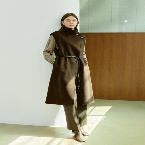 [더아이잗컬렉션]울 캐시미어 하이넥 롱 베스트 CRAA0VTH11BR -DG