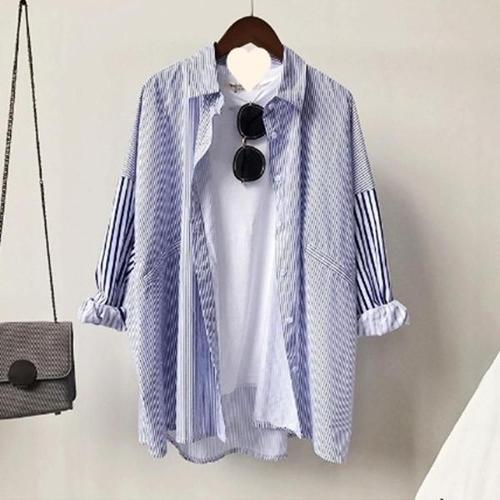 [엄지척]루즈빗 롱셔츠 스트라이프 간절기 셔츠 남방_19650480_667501