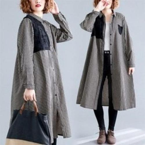 [엄지척]F56283 루즈핏 체크 면마 롱셔츠 롱남방 셔츠원피스_19644979_667501