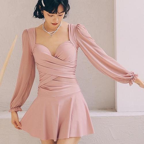 [다잇템]여자 비침 롱슬리브 귀여운 분홍색 수영복 (10193789A)