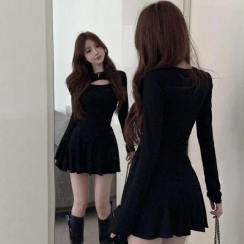 [다잇템]여성 바디라인 슬림핏 롱슬리브 컷아웃 원피스 (46164066)