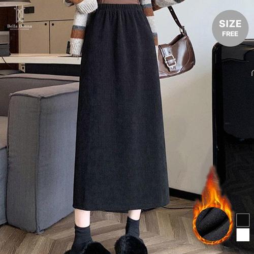 여성 심플 겨울 융 기모 코듀로이 골덴 밴딩 롱스커트 (WFGIXKB)