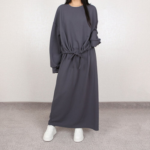 파라노말샵 / (투피스) 5색 고슬 리버 스트링 긴팔티 롱스커트 세트