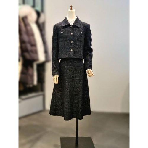 [엘린무드](세트) 벤자민 트위드 투피스 노카라 핀턱 숏자켓 롱 스커트 세트(2color)