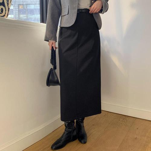 [미라클세븐]여성용 봄가을 롱스커트 벨트세트 뒷트임 디자인