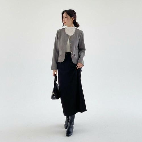 SAHINER 여성 집업 점퍼 크롭 자켓 스트레이트 롱 스커트 봄 가을 세트 BTZ14