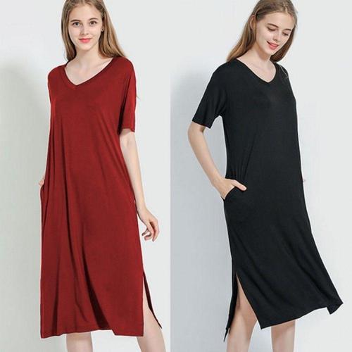 [오너클랜]인기상품 롱 슬립 원피스 브이넥 데일리 파자마 포켓 드레스 [WFLKYE4_260304]