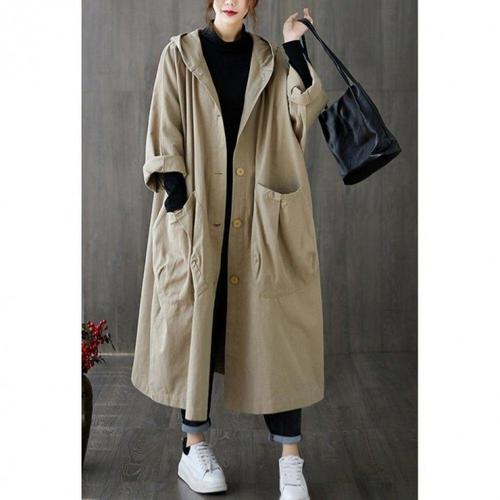 [해피통통] 빅사이즈 트렌치 야상 후드 사파리 여성 정장 롱 코트 여성의류