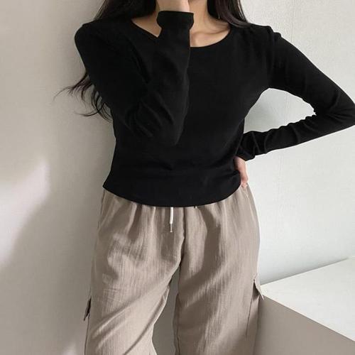 [다잇템]여자 U넥 슬림핏 롱슬리브 워머 색상 티셔츠 (10685849A)