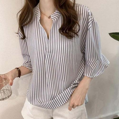 [오너클랜]인기상품 여성 봄 가을 브이넥 스트라이프 롱 반목 티셔츠 블라우스 [WFLHJWW_260208]