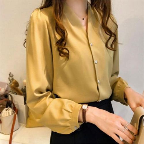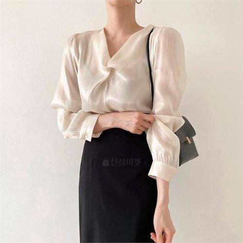 [다잇템]여자 V넥 롱슬리브 잔주름 웨딩 블라우스 (8134814A)