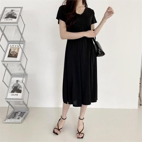 [다잇템]여자 반팔 미니멀리즘 Y넥 롱원피스 (8291889A)
