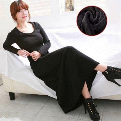 [오너클랜]인기상품 퍼 안감 여성 롱티셔츠 면 긴팔 원피스 [WFLLBAK_260304]