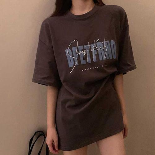 [오너클랜]인기상품 오버핏 여성 라운드 반팔 롱티 뒷면 레터링 티셔츠 봄 여자 티 [WFLLBAW_260304]