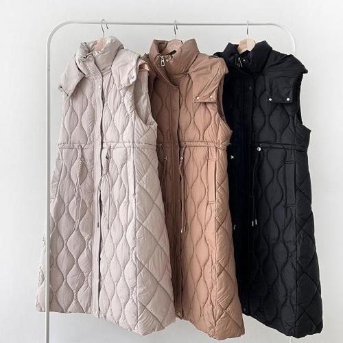 [다잇템][다잇템] 여성 롱집업 물결무늬 누빔 후드조끼_23328758_588872