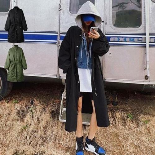 [셀러허브_여성트랜드패션]여성 사파리 빅사이즈 캐쥬얼 롱 후디 바람막이