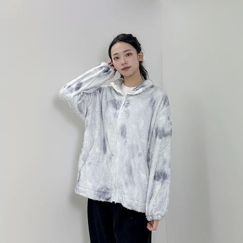 [셀럽하우스]반하이넥 LIQD0391 오버핏 얼룩 수면 집업 자켓 롱 후리스