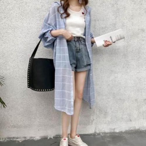 [다잇템_패션]여성 격자 캐쥬얼 남방 롱 주머니 남방
