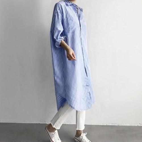 절개 스트라이프 데일리룩 스트라이프 여자 롱 셔츠