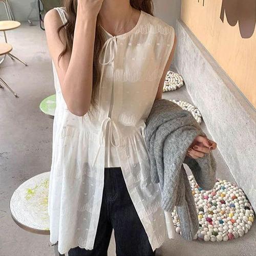 [에이치플러스몰]여성 러블리 레이어드 민소매 오픈형 롱조끼 포인트룩