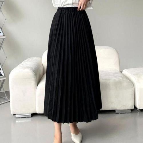 [XBJ7J7O7]여성 밴딩스커트 플리츠롱스커트 스커트 치마