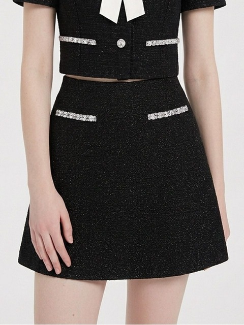 [트위디아] [ATELIER]루시엔 스팽글 포인트 트위드 미니 스커트 블랙
