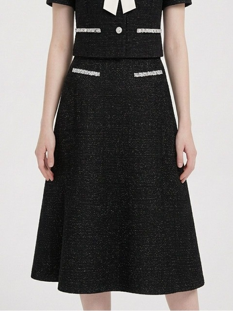 [트위디아] [ATELIER]루시엔 스팽글 포인트 트위드 롱 스커트 블랙