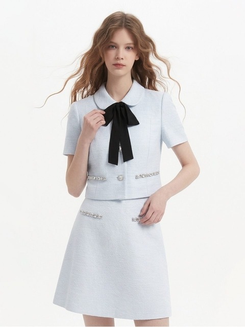 [트위디아] [ATELIER] 루시엔 리본 트위드 포켓 스팽글 크롭 자켓 블루