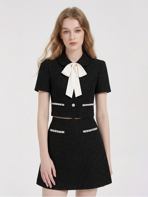 [트위디아] [ATELIER] 루시엔 리본 트위드 포켓 스팽글 크롭 자켓 블랙