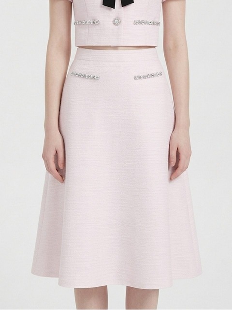 [트위디아] [ATELIER]루시엔 스팽글 포인트 트위드 롱 스커트 핑크