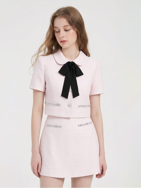 [트위디아] [ATELIER] 루시엔 리본 트위드 포켓 스팽글 크롭 자켓 핑크