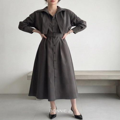 [보니제이]2WAY 탈부착 케이프 빅카라 핀턱 셔링 롱 원피스 루즈