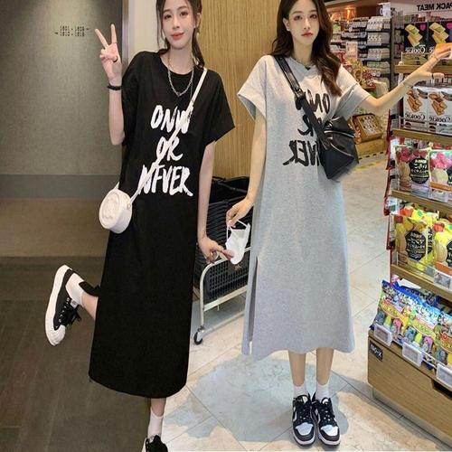 여름 루즈핏 원피스 옆트임 홈웨어 여자 외출 반팔 롱 WFLOZQ2
