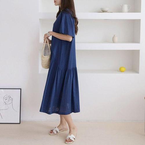 [에이치플러스몰]루즈핏 편안한 코튼 반팔 롱 원피스
