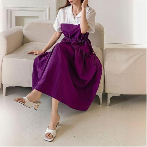 [에이치플러스몰]루즈핏 편안한 레이어드 반팔 롱 원피스