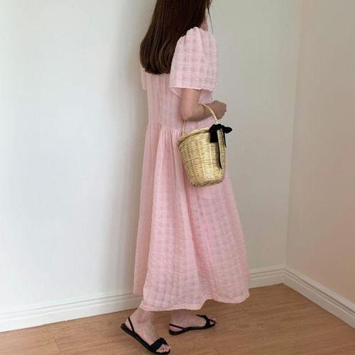 서진맘 여성 루즈핏 심플 스트링 라운드넥 반팔 롱 원피스