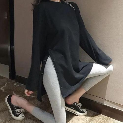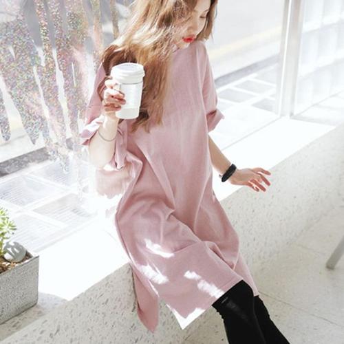 [주식회사 브이와이][JHQRZGRF_4A]옆트임 어린이집등원룩 루즈핏 여성 롱티셔츠 (22309337A)