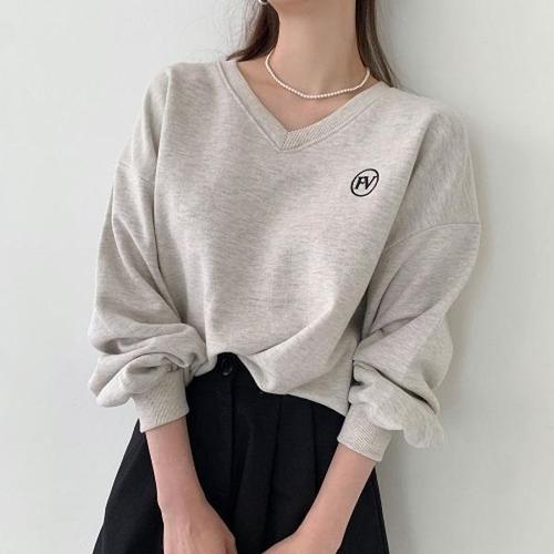 [엄지척]여성 롱슬리브 브이넥 오버핏 루즈핏 맨투맨 티셔츠_19629469_667501