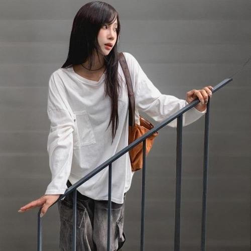 [신상오픈런]|KMT9AFB|여성 빈티지 스타일 루즈핏 롱 슬리브 티셔츠_23359254_597559