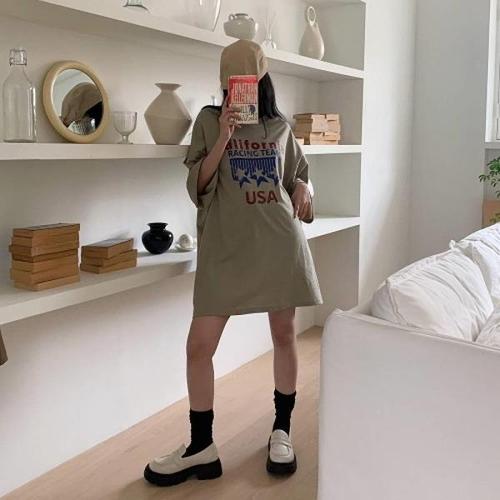 F007527_빈티지프린팅 루즈핏 롱 반팔티 나염티