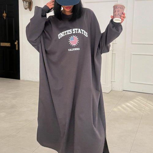 여성 빅사이즈 봄 가을 롱 원피스 루즈핏 데일리룩 긴팔 맨투맨 원피스