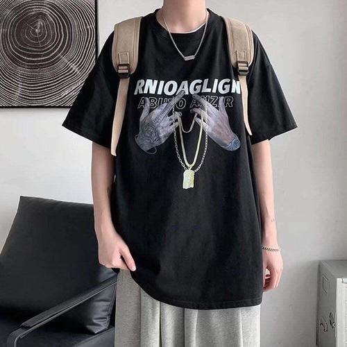 [셀럽하우스]프린팅 MBUM0281 오버핏 반팔티 루즈한 스타일 티셔츠 라운드넥